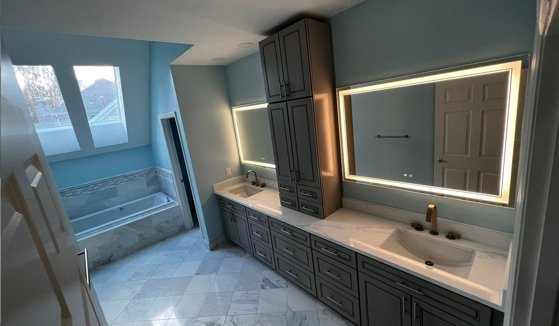 We delivered a stunning master bathroom that perfectly balances style and function. The custom double vanity provides ample storage and counter space, while the expansive walk-in shower with frameless glass creates an open, spa-like feel. Premium marble-look tile, LED-lit mirrors, and modern fixtures complete the sophisticated design. Every detail was carefully planned and executed to create a retreat our clients love using every day.