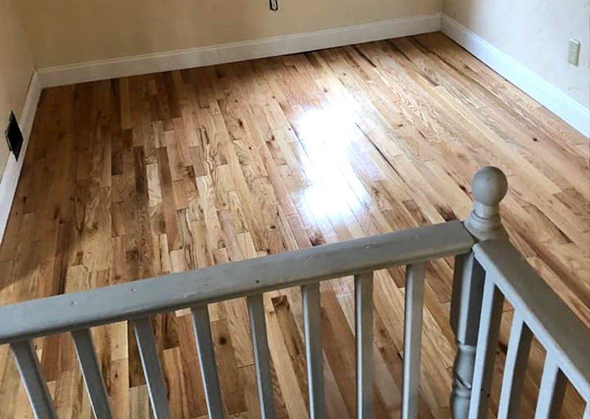 We delivered a stunning hardwood flooring installation featuring natural hickory with rich color variation and distinctive grain patterns. The flooring flows seamlessly from room to room, with expertly crafted transitions and precise stair tread installation that showcases quality workmanship. Each board was carefully placed to create visual continuity while highlighting the natural beauty of the wood. The result is warm, inviting floors that add timeless elegance and lasting value to the home, transforming every space with durable hardwood that will be enjoyed for generations.